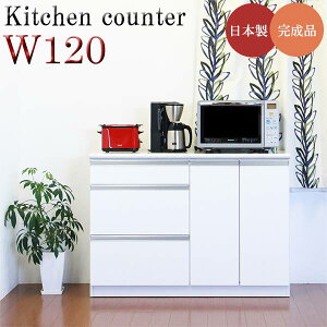 ル付きで簡単に引き出せる。カウンターの前面を鏡面仕上げを施し、清潔感ある光沢仕上げのすっきりしたデザインに。家電に便利な2口コンセント(計1500W)付き。サイズ W120×D43.5×H85.5cm...