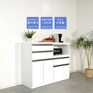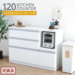 キッチン 収納 引き出し スライド 扉収納 作業台 120 幅 組立不要 アイランド ダイニングボード レンジラック カウンターキッチン オープンカウンター 食器棚 大型レンジ対応 白 新生活