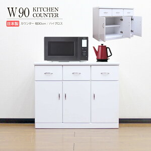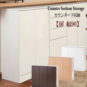 カウンター下収納 完成品 幅90cm ホワイト 白 木製 キッチンカウンター キッチンキャビネット キッチン収納 ダイニングボード キッチンボード 新生活