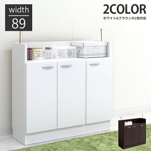 幅89×奥行30×高さ85cm 【カラー】 ホワイト 【特徴】 完成品・日本製 両サイドツノ出し部分つっぱり金具付 カウンター下収納の為天板はついていません 【送料】 送料無料です。 ※北海