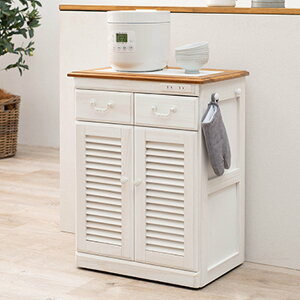 清潔感ある白と木目調のナチュラルデザイン。大容量の収納力。丈夫でお手入れも簡単な木目調、PVC加工のナチュラルカラー天板。背面内側に2口のコンセントが付いているので炊飯ジャーやポットなどに便利。