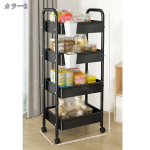 メイン素材:炭素鋼★「カラー」ホワイト ブラック ブルー ピンク 「サイズ」(cm) 4段:幅41×奥行28×高さ95cm 「部品」キッチンワゴン(1個)、キャスター(4個)、フック(4個)、バスケット(2個)★「軽くて丈夫なスチール...