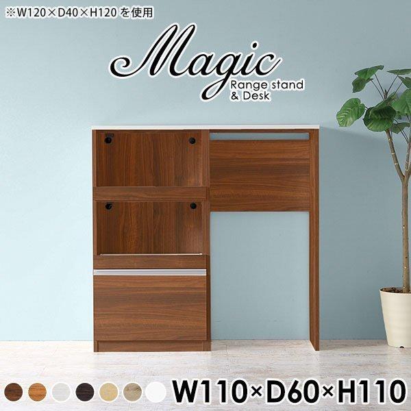レンジ台と食器棚と兼ねたキッチンボードmagic レンジ台×キャビネット W160×D55×H120 木目サイズ。サイズ:約幅1600 奥行き550 高さ1200 mm。材質[天板・スライド棚]メラミ...