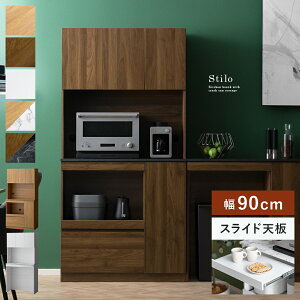 レンジや炊飯器などの家電や食器、ストック食品など、キッチン用品をまるっと収納できるキッチンボード“Stilo(スティロ)” 便利なスライド作業台つきで、スペース不足も解決。キッチンまわりがすっきり整い、料理もはかどる、理想の