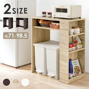 ごみ箱上のスペースを有効活用できる、シンプルデザインのラック。天板下やサイドにオープン収納が付いていてキッチン小物も収納可能。 ■カラー ナチュラル ■サイズ (約)幅71cm×奥行42cm×高さ90.5cm ■素材 主材:プリ...