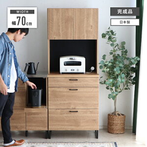 食器棚 レンジ台 キッチンボード 完成品 幅70cm おしゃれ 収納 木製 引き出し付き 国産 日本製 木目調 脚付き キッチン収納棚 カップボード 食器収納 レンジボード ダイニングボード
