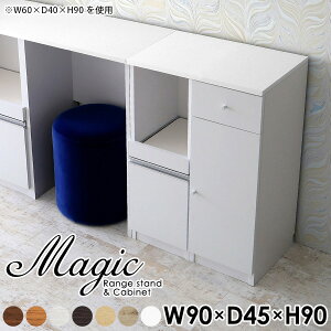 magic レンジ台×キャビネット W90×D45×H90 木目サイズサイズ:約幅900 奥行き450 高さ900 mm材質[天板・スライド棚]メラミン樹脂化粧合板[前板]ブラウン・ダークブラウン・チーク/デルナチュレ化粧合板ホワイト...