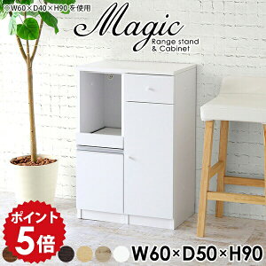 magic レンジ台×キャビネット W60×D50×H90 木目サイズサイズ:約幅600 奥行き500 高さ900 mm材質[天板・スライド棚]メラミン樹脂化粧合板[前板]ブラウン・ダークブラウン・チーク/デルナチュレ化粧合板ホワイト...