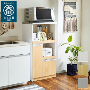 【サイズ】幅60×奥行45×高さ120cm【材質】ホワイト:ハイグロスシート繊維版ナチュラル、シルバー:強化紙繊維版【生産国】日本【商品説明】完成品で組立不要。12キロの米びつ付き国産レンジ台。オープン部分はスライドカウンター付き。