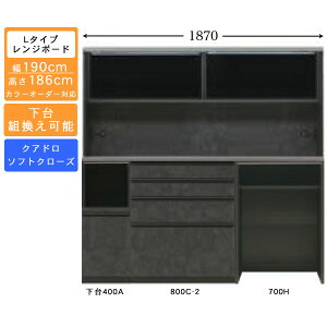 セミオーダーで下台、カラーが選べる国産食器棚。■ロータイプレンジボードサイズ 幅186.5cm×奥行49cm×高さ186cm。