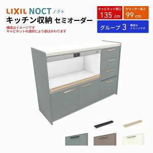 メーカー:LIXIL/リクシル シリーズ名:キッチン収納 ノクト 収納プラン名:壁付型カウンタープラン 寸法:135cm(75+60cm) カウンター高さ99cm 奥行45cm グループ3