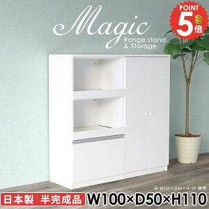 レンジ台と食器棚と兼ねたキッチンボードmagic レンジ台×収納庫 W100×D50×H110 木目サイズサイズ:約幅1000 奥行き500 高さ1100 mm材質[天板・スライド棚]メラミン樹脂化粧合板[前板]ブラウン...