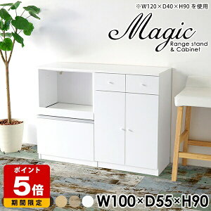 magic レンジ台×キャビネット W100×D55×H90 木目サイズサイズ:約幅1000 奥行き550 高さ900 mm材質[天板・スライド棚]メラミン樹脂化粧合板[前板]ブラウン・ダークブラウン・チーク/デルナチュレ化粧合板ホワ...