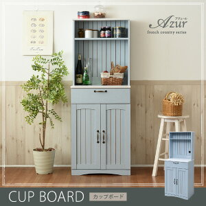 ■特徴 淡いブルーとグレイッシュなホワイトのバイカラーが特徴のフレンチスタイル。 丸みのあるフォルムや、ディテールで魅せるカントリーテイストなカップボード ■商品説明 バイカラーで魅せるフレンチカントリースタイルのカップボード。<
