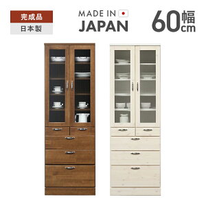 食器棚 キッチンボード 完成品 幅60cm 国産 木製 おしゃれ 収納 引き出し付き カップボード 食器収納 キッチン収納棚 キッチンラック ダイニングボード ホワイト ブラウン