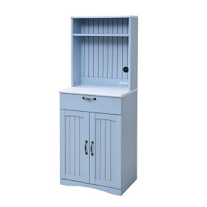 バイカラーで魅せるフレンチカントリースタイルのカップボード。コンパクトサイズなので一人暮らしにも最適。オープン部は2口コンセント付だから、トースターなどの調理家電の収納に便利。上段には、可動棚があるので、調味料などの小