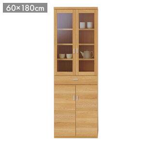 ■商品名 食器棚 完成品 幅60cm 高さ180cm ■商品説明 ・天然木の枠とガラスを組み合わせた扉が美しい。 ・高さ調節のできる可動棚6枚付き(6cmピッチ8段階)...