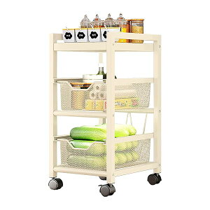 【送料無料】キッチンワゴン 収納カート 引き出し バスケットラック 隙間収納 スライド式 トロリー収納ラック 移動式 キャスター付き 組立簡単 小物 調味料 洗面所 すき間ワゴン 台所 整理棚 (3段...