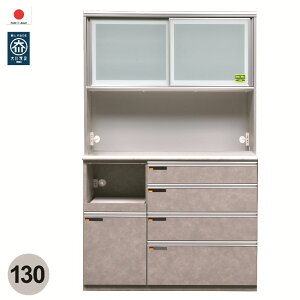 レンジボード キッチンボード 130 日本製 大川家具 完成品 食器棚 レンジ台 ダイニングボード カップボード 引き戸大容量 おしゃれ キッチン収納 カラー ムラミグレー(石目調) 本体サイズ(m...