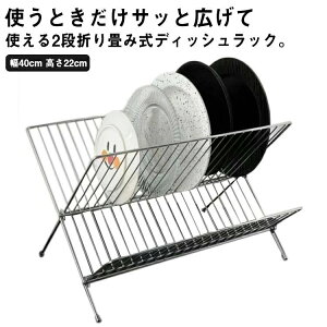 使うときだけサッと広げて使える2段折り畳み式ディッシュラック。使用しないときは折りたたんでスリムになるので、狭いキッチンでも作業スペースの邪魔になりません。お皿だけでなく、小さな鍋も収納できるメインのディッシュラックと