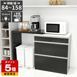 RDW-0083/PlusOneL字 BlackPearlサイズ約幅840〜1580 奥行445 高さ945 mm材質【レンジ台】[天板・前板・側板]メラミン樹脂化粧合板[背板]プリント化粧合板※天板は120℃までの耐熱処理と耐水処理...