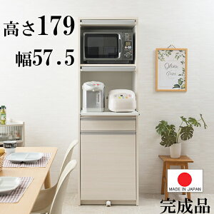 レンジ台とゴミ箱が一体化した収納庫。ゴミ箱のふたがフラップ扉と連動して開閉するから、ゴミ捨ての手間も軽減。収納と家事効率のアップを同時に叶えます。扉収納+家電置き+引き出し+ゴミ箱を1台に集約し、家事動線を短縮!●キッチンに必要な機能...