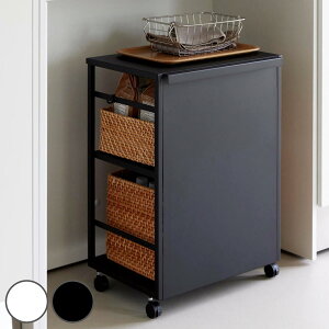 ランドリールームや子供部屋などで活躍する天板付きの収納ワゴンです。 キャスターでラクに移動でき、クルッと返せば目隠しプレートで収納した物をスッキリ隠せて便利です。