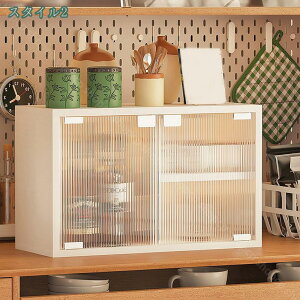 でき、上部にはさらに扉収納も!●最上部は扉付きの棚収納。ホットプレートや大皿、食品ストックなどが目隠し収納できます。●扉内には3cm間隔で5段階に高さ調節できる可動棚板1枚付き。●上段のオープン棚は電...