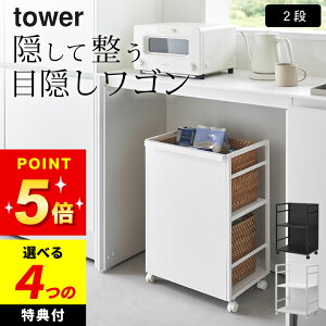 キャスター付き 2段 キッチンワゴン キッチン タワー tower 山崎実業 目隠しワゴン タワー 説明文 かさばる大きな物を目隠ししながら一括収納! 食品類やペット用品、お子様の学用品まで様々な物をス...
