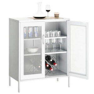 ?【高品質スチール素材】このサイドボードは、堅牢な金属製キャビネットと軽量なメッシュネットドアを組み合わせて作られています。各棚板の耐荷重は60kgまで可能で、優れた耐久性を誇ります。金属製の本体は環境に優しい粉体塗装を施