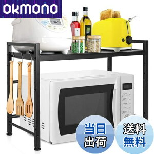 フック付き 省スペース レンジ台 食器棚。伸縮レンジラック サイズ:約40×36×46cm 伸縮範囲:40cm-60cm 材質:ステンレス 耐荷重:20kg~35kg。●おすすめポイント ・ピタリと収まる伸縮設計:...