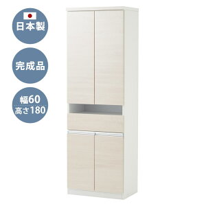 傷がつきにくくお手入れの容易な合成樹脂板を使用しており、サイズは幅60cm、高さ200cmと収納力抜群で高級感のあるアートシリーズの食器棚です。各収納には可動棚とソフトクローズ蝶番によって、使い勝手のよい食器棚です。扉付の収納部は全て...