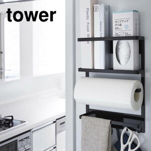 マグネット冷蔵庫サイドラック タワー ブラック 冷蔵庫側面に磁石で簡単取り付け。よく使うキッチン小物を一括収納。上段には、よく使うラップやアルミホイルを立てて入れることができます。レシピ本やスパイスも収納できます。中段