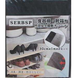 ◆商品名:SERBSP 『除湿・消臭・竹炭シート』下駄箱 シート靴箱 シート食器棚 フリーカット タンスシート 抗菌 防カビ 清潔 防臭 調湿 (30×100cm 2枚入り)【サイズ】幅 約30cm ×...