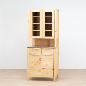アルダー無垢材のやさしさが、前面のアールで引き立てます。食器棚の背板がないので間仕切りにしても圧迫感がありません。すべての商品は背面化粧をしています。天板部分は人工大理石を使用しており、傷に強い設計です...