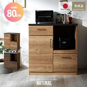 多機能の収納スペース食器や家電など1台で収納 キッチンカウンター 幅80cm COPAN(コパン) ■すぐに使える完成品 組立が苦手な方や面倒な方におすすめの完成品です。届いたその日からご使用できます。 ■木の質感に近づける3Dシ