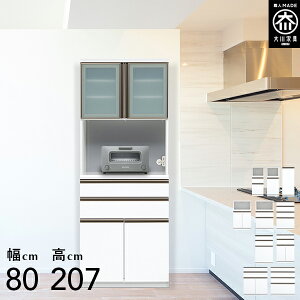 ユニット式 キッチンボード 幅80cm レンジボード 高さ203cm 食器収納 ハイタイプ 食器棚 スリム 完成品 キッチン収納 80幅 国産 大川家具 日本製