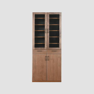 商品名 メリッサ カップボード サイズ 奥行:460 高さ:1900 (mm) ● 60サイズ 幅:589 mm ● 80サイズ 幅:783 mm カラー 1. ウォールナット 2. オーク 素材 ■ 戸枠:無垢材 ■ 前板・戸板:突...