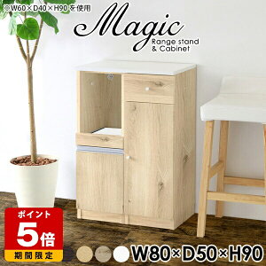 magic レンジ台×キャビネット W80×D50×H90 木目サイズサイズ:約幅800 奥行き500 高さ900 mm材質[天板・スライド棚]メラミン樹脂化粧合板[前板]ブラウン・ダークブラウン・チーク/デルナチュレ化粧合板ホワイト...