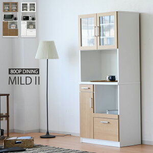 前板に木目を楽しめるパイン天然木を使用し、温かく優しい雰囲気です。クロスガラスは中身をさりげなく隠してくれます。これ1台で家電収納、食器収納と省スペースで使用できるのもうれしいポイント。 左扉内は可動式の棚が付いており、収納する物によ...