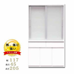 送料無料 開梱設置 国産の117cm引き戸食器棚 素材 :ハイグロスシート ミスト強化ガラス サイズ:幅117cm×奥行45cm×高さ206cm カラー:ホワイト 特徴 :国産 :可動棚 :カウンタ...