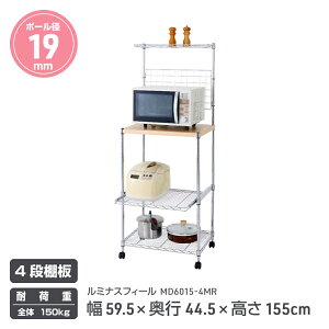 キッチン家電をまとめて収納できる! 木製天板レンジ台付きスチールラック ●サイズ(約) 幅59.5×奥行44.5×高さ155cm 木天板までの高さ:92cm ※高さはナイロンキャスター装着時の値です。 ※標準アジャスターを装着した場合...