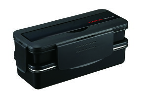 スリムな2段式の男性用お弁当箱。4ヶ所のロックとパッキンで汁漏れしない!安心して持ち運べます。油汚れもサッと洗える!防汚加工がされています。上段にはおかずの区分けに便利な中仕切り付き。自動エア弁付き。持ち運びに便利なラ