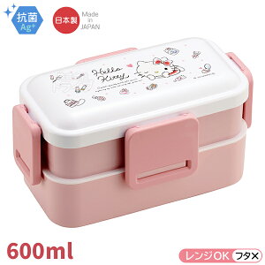 ハローキティの汁漏れ安心4点ロック式2段のお弁当箱です。ドーム型のフタはお弁当の中身をつぶさないので、盛った時のふんわり感をそのままキープ♪銀イオンの抗菌加工で菌の繁殖を抑えます。フタを外して電子レンジOK。食洗機対応。サ