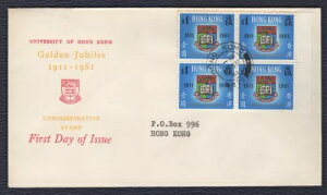 Hong Kong 1961, University 50th Anniv BL4, FDC cover locally run, SG 192, Mi 192-商品について販売者のメモ「中に公式フライヤーが含まれています/消印、透か...
