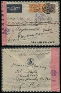 商品について出品者コメント「中国、1940年、第二次世界大戦中、複数の検閲を受けた航空郵便カバー。青島から香港経由でレバノンへ、転送…続きを読む出品者コメントについてタ...