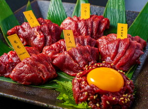 赤身馬刺し(約50g 1パック) 内もも、外モモ、シンタマなどに分けられるモモの部位、赤身そのものの味を楽しめます。 中トロ(霜降り)馬刺し(約50g 1パック) 赤身と刺しのバランスが絶妙口の中で程よくトロけます。 大トロ馬刺し(約...