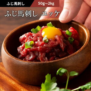 馬刺しユッケ 1パックあたり50g ユッケのタレ付き。産地 カナダ産熊本肥育または国産、フランス産熊本肥育(重種馬)。