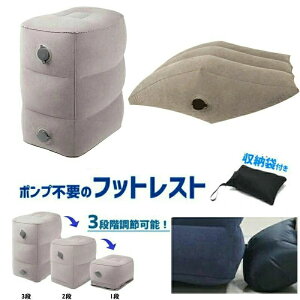 製品情報 名称: エアーフットレスト エアーオットマン 携帯便利 ポンプ不要 足元クッション 空気入れ簡単 空気抜き簡単 足置き 足枕 クッション フットレスト 空気 収納袋付き 三段階 飛行機 バス 車 エアー オットマン クッショ...