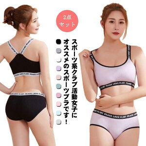 ジュニア用スポーツブラとショーツのセット 気持ちいい肌触り綿素材使用 シンプルでおしゃれな人気の英字ロゴテープデザインがポイント